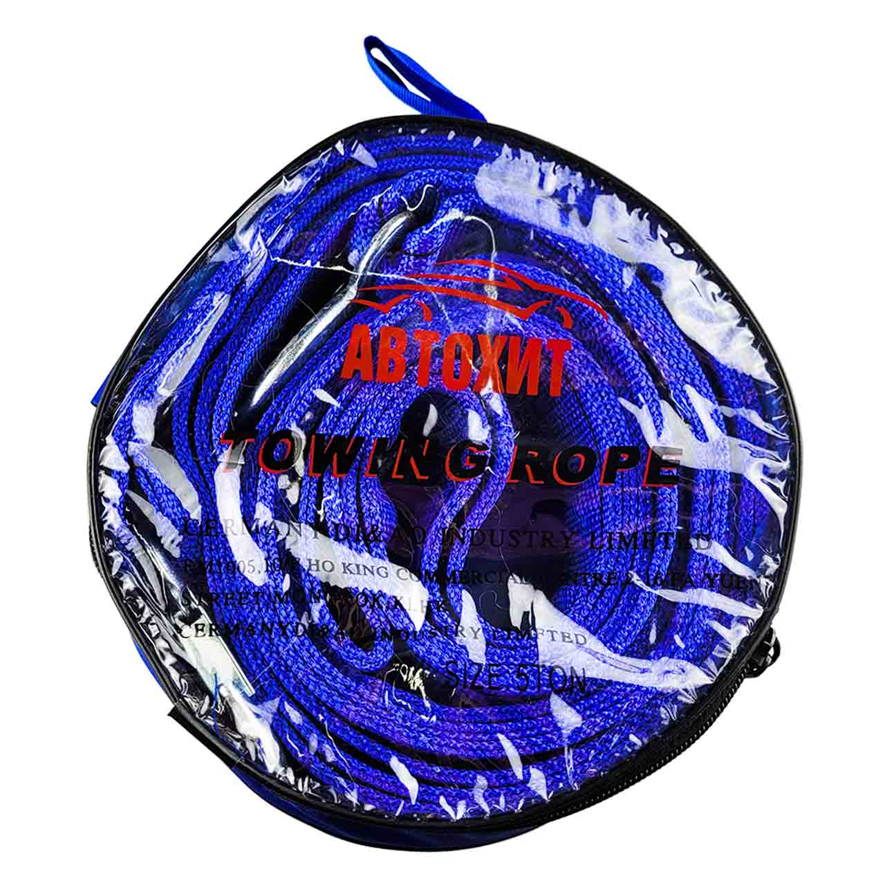 Буксировочный трос 5 метров предназначен для буксировки автомобиля общей массой до 5 тонн. Незаменим в условиях бездорожья и в аварийных ситуациях. Трос с усиленными краями изготовлен из сверхпрочной полипропиленовой синей нити, которая обеспечивает прочность и устойчивость к влаге, воздействию нефтепродуктов и других химических соединений. Стальные крючки обеспечивают надежное сцепление.